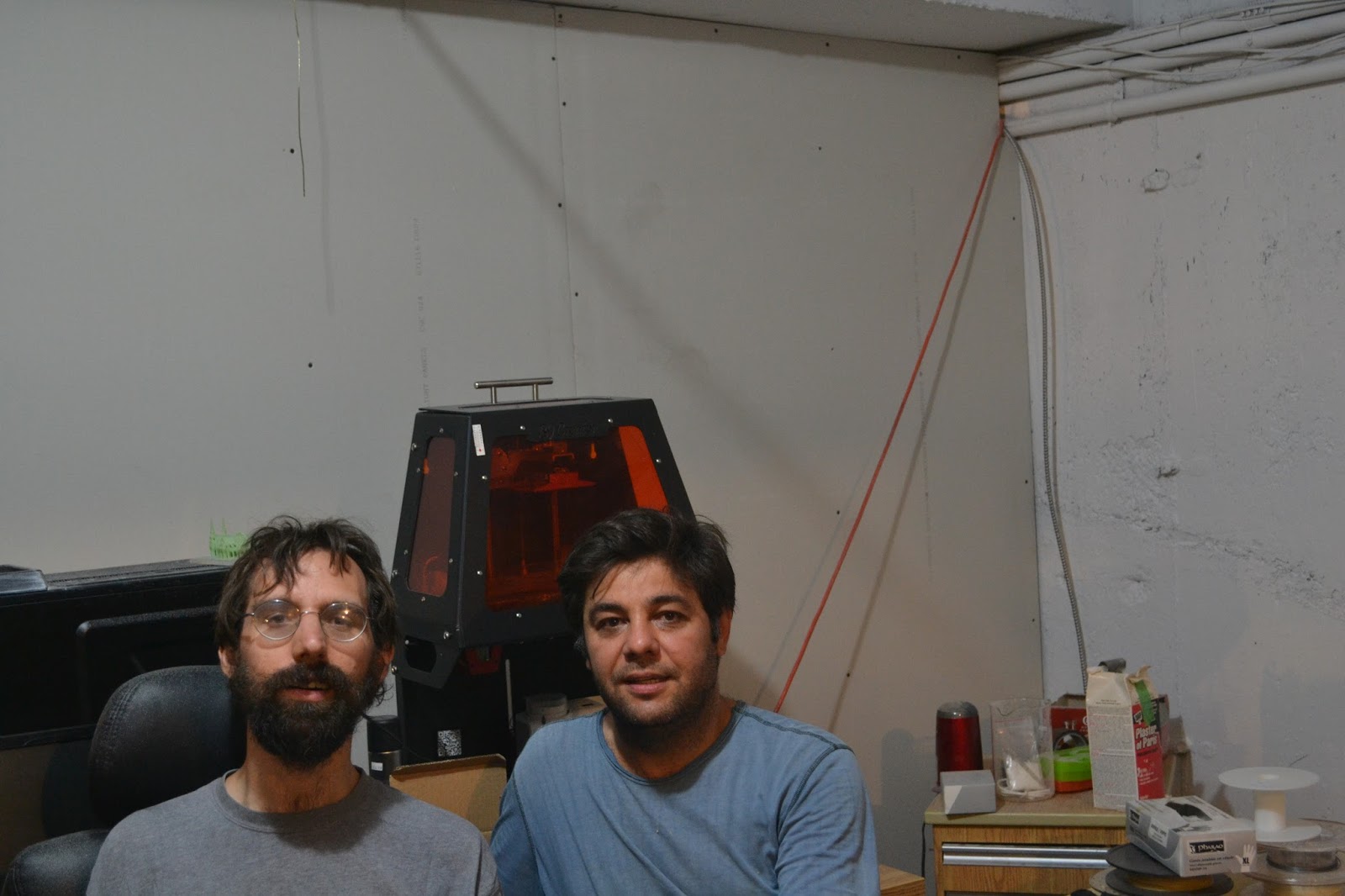 Tibi talks to Sam in a maker/hacker lab like location.